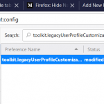 次に、アドレスに about:config を打ち込み設定画面を出し、 toolkit.legacyUserProfileCustomizations.stylesheets の値を true にする。その方法に関してはこちらのページでまとめた。